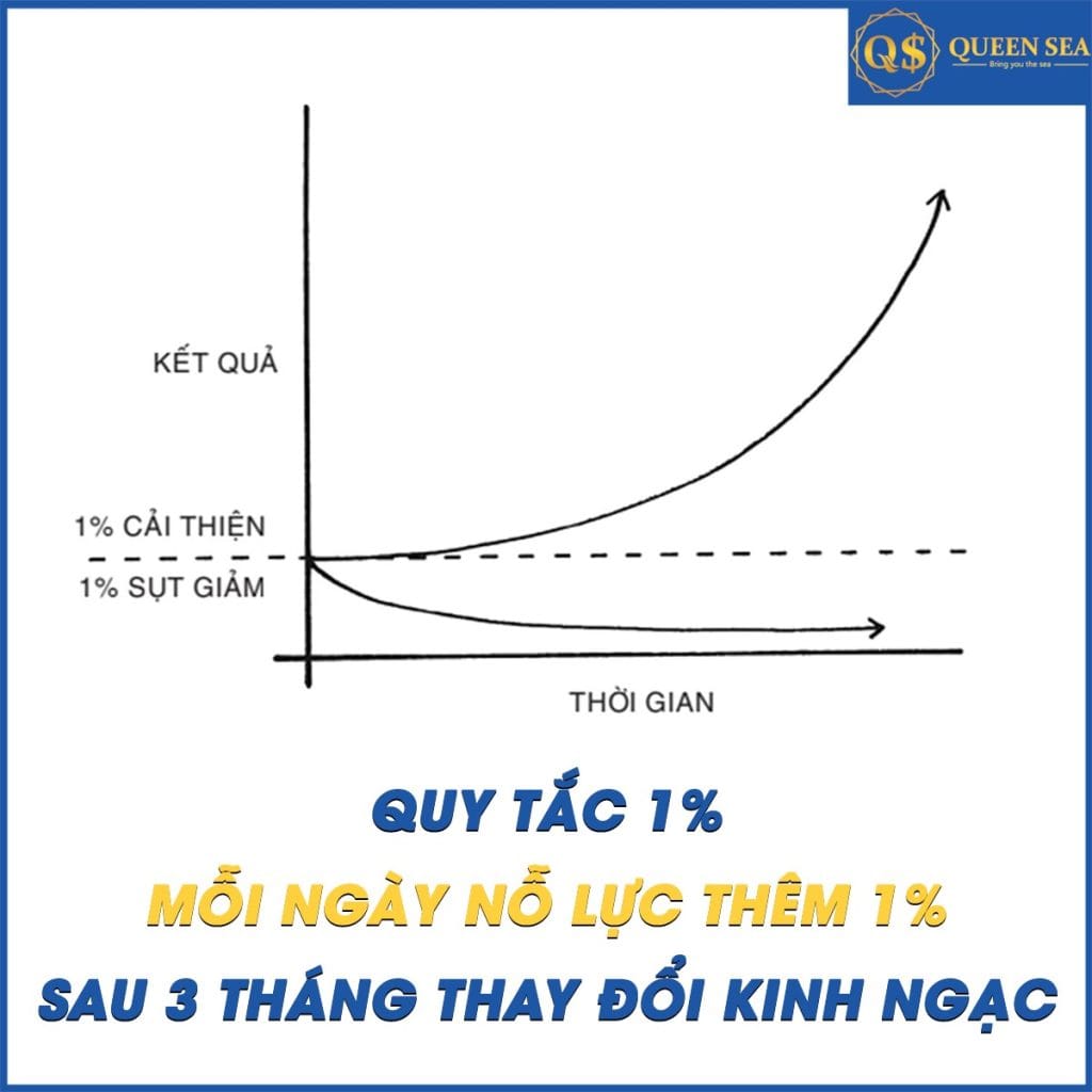 “Tích tiểu thành đại”, duy trì nỗ lực thường hằng trong một thời gian dài bạn sẽ có được một sức bật to lớn. Hành trình vạn dặm bắt đầu từ những bước chân nhỏ, 1% tuy rất nhỏ nhưng ngày tháng kiên trì sẽ giúp ta gia tăng giá trị theo cấp số nhân.